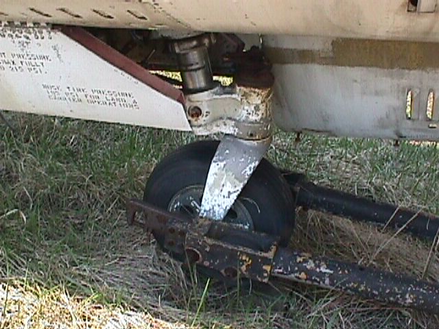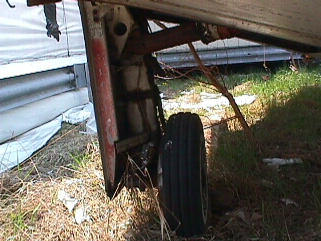 | Landing Gear and associated modifications. At some point, left main landing gear was replaced by a manufactured strut for ground maneuvering. Nose gear is un-modified. Tow bar is not included in sale. |
